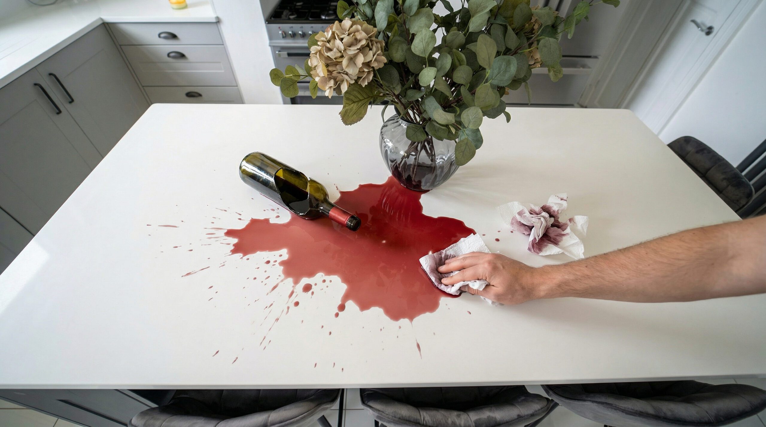 Granite and quartz are incredibly resilient, but acidic and strongly coloured liquids can still cause marks if left to sit. Substances such as wine, tomato sauce, coffee, fruit juice, and cooking oils should be wiped away promptly to avoid residue or dulling of the surface. Quick action prevents staining and keeps the worktop looking consistently bright.