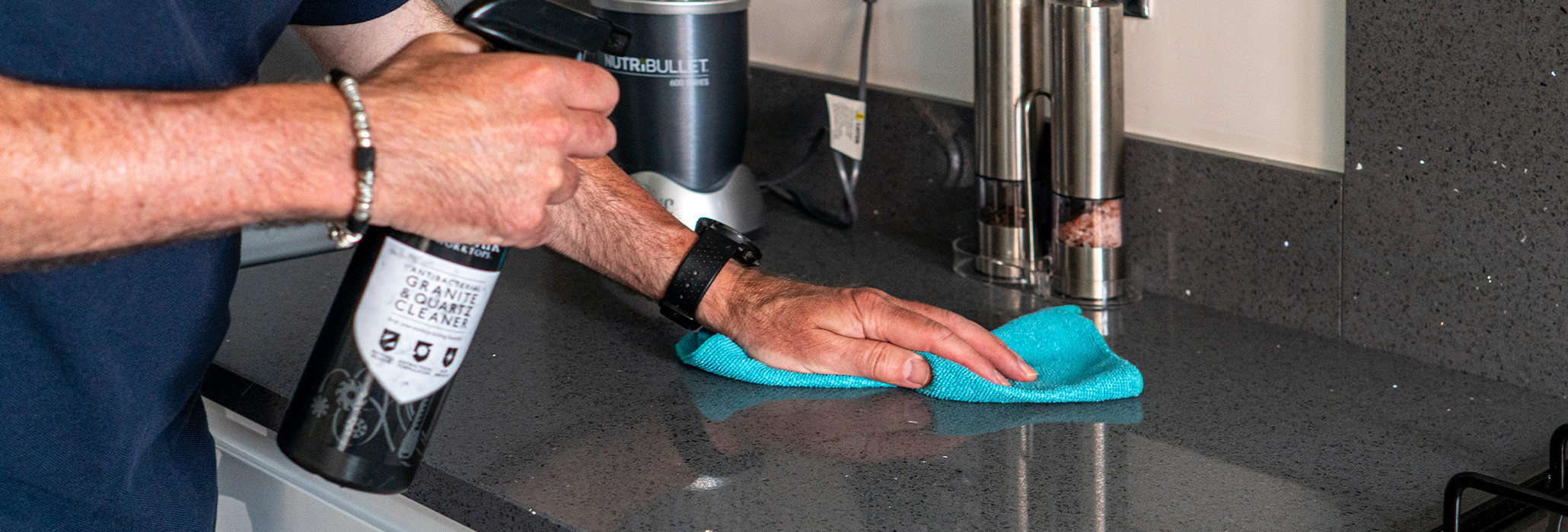 Avoid bleach, glass cleaners, degreasers, or homemade solutions such as vinegar, lemon, ammonia, or orange based cleaners. These products are acidic or alkaline and can damage the surface over time, making worktops more prone to staining. Sticking to approved cleaners ensures long term performance and keeps the protective finish intact.