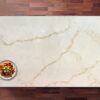 Unlike natural marble, Supreme Calacatta Gold Quartz countertop surface, made from pure quartz, requires no sealing and offers outstanding resistance to stains, scratches, and heat. It’s non porous, hygienic, and easy to maintain, making it an ideal option for family kitchens, modern bathrooms, and even commercial interiors.